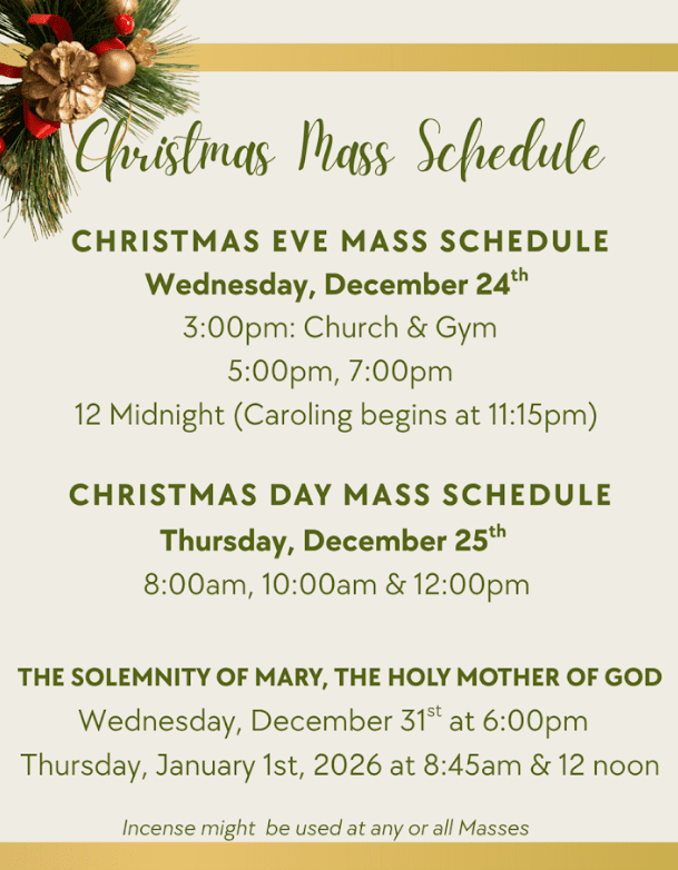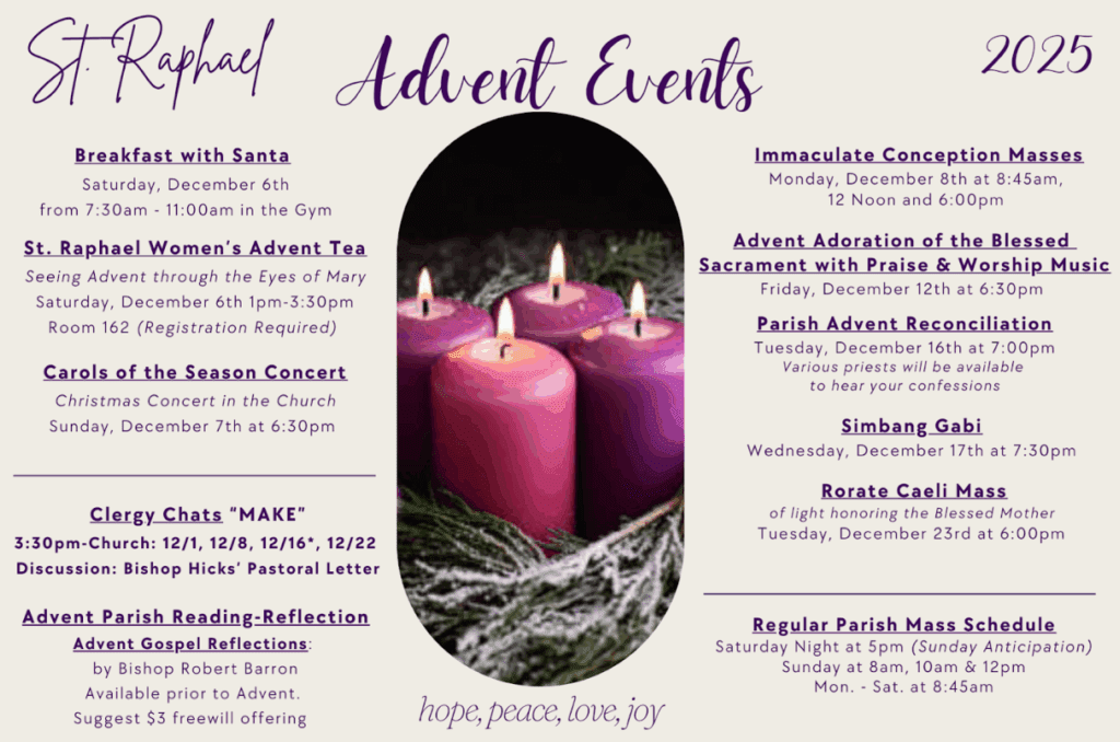 As we prepare for Advent we wanted to share with you our events. We look forward to seeing you and your family during this upcoming new liturgical year.