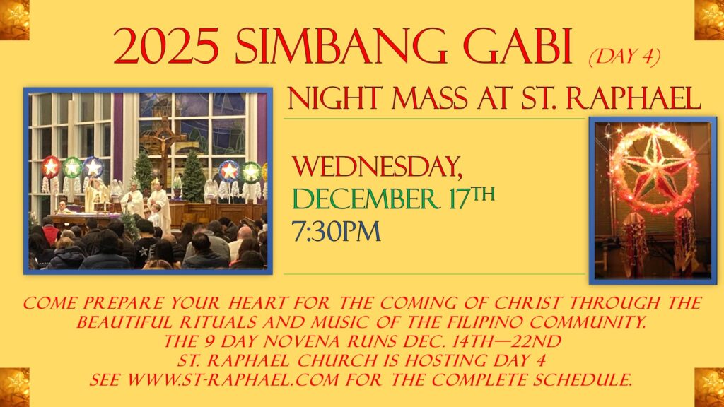 *Please note that our postcards that went out to all of our parishoners noted the Simbang Gabi Mass was at 7:00pm. It is correct on this image and Mass begins at 7:30pm.