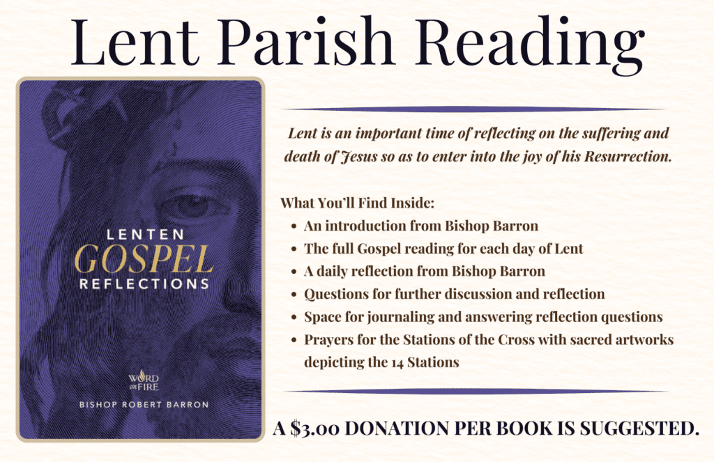 Books are located in the Narthax. This year we will be reading Lenten Gospel Reflections. A $3.00 donation per book is suggested.