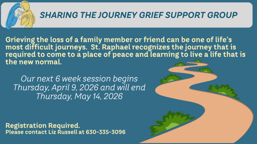 Sharing the Journey, St Raphael’s grief support ministry, will begin the Spring session on Thursday, April 9th, from 7:00 to 8:30 pm and will meet for six consecutive weeks.