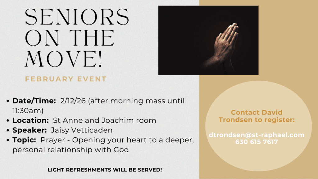 Join us after morning mass until 11:30 on February 12 in the St Anne & Joachim Room with Jaisy Vetticaden.